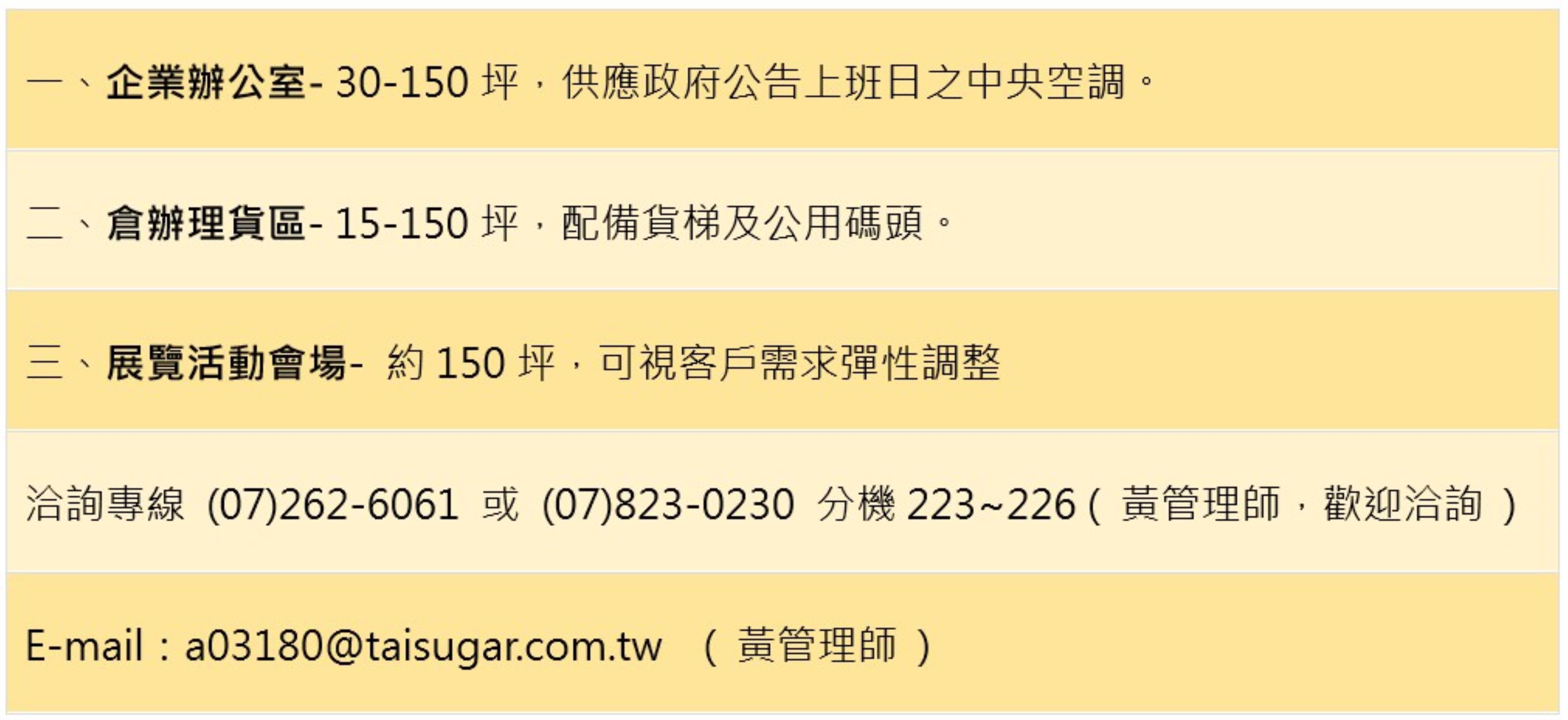 高雄分公司地址:806614 高雄市前鎮區成功二路4號 (交通位置圖) 電話:07-8230-230 消費者服務專線:0800-026-168 若您對高雄分公司有任何建議事項及客戶服務,請 e-mail:tsc01@taisugar.com.tw 台灣糖業公司版權所有 Taiwan Sugar Corporation All Rights Reserved 您是第 624,903 位瀏覽者 更新日期 2025-10-16 為供更為穩定的瀏覽品質與使用體驗,建議更新瀏覽器至以下版本:IE11(含)以上、最新版本Edge、最新版本Chrome、最新版本Firefox、最新版本Safari