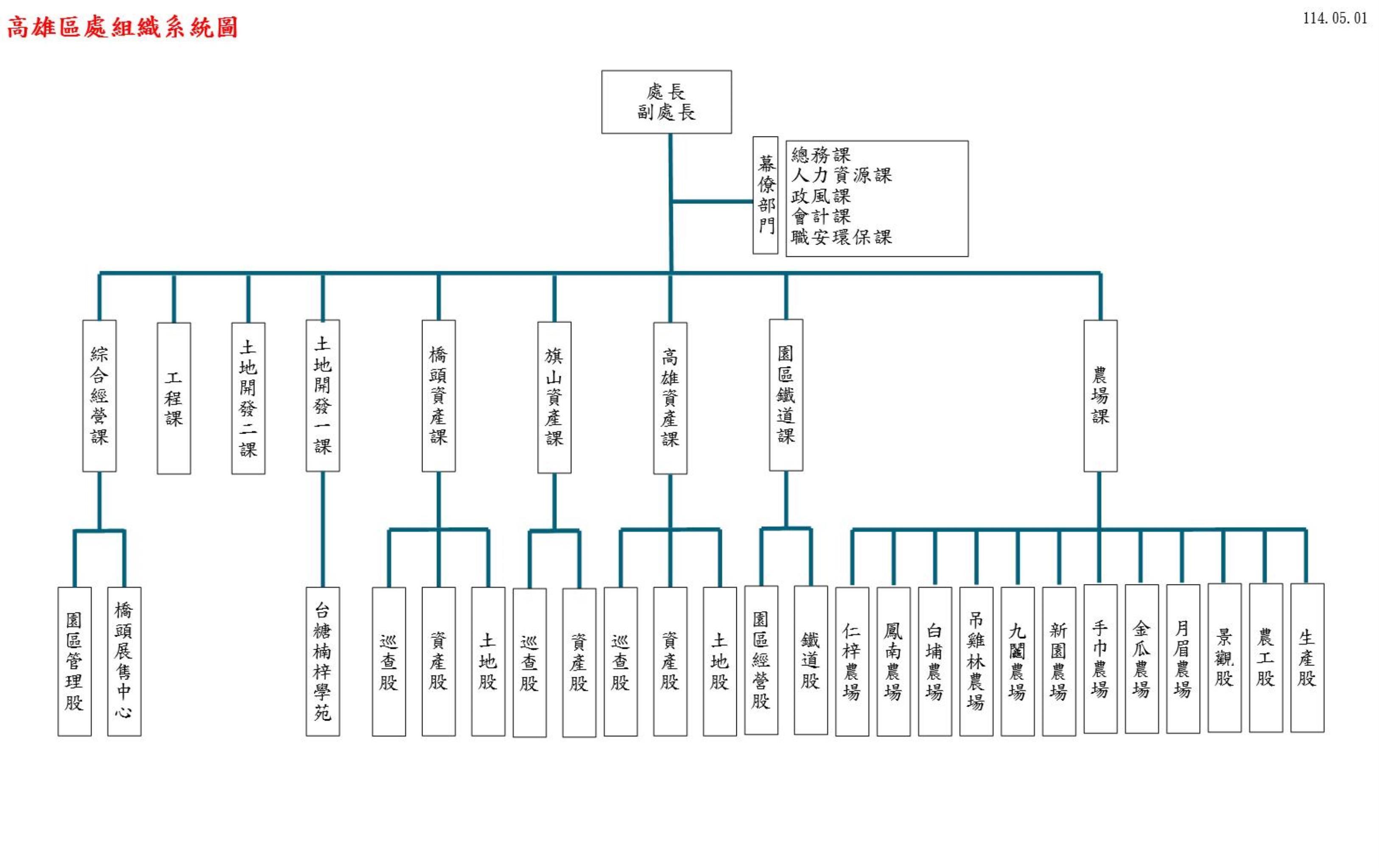 | 區處 | 高雄市橋頭區糖廠路24號 | 07-6119299 | 07-6119726 |