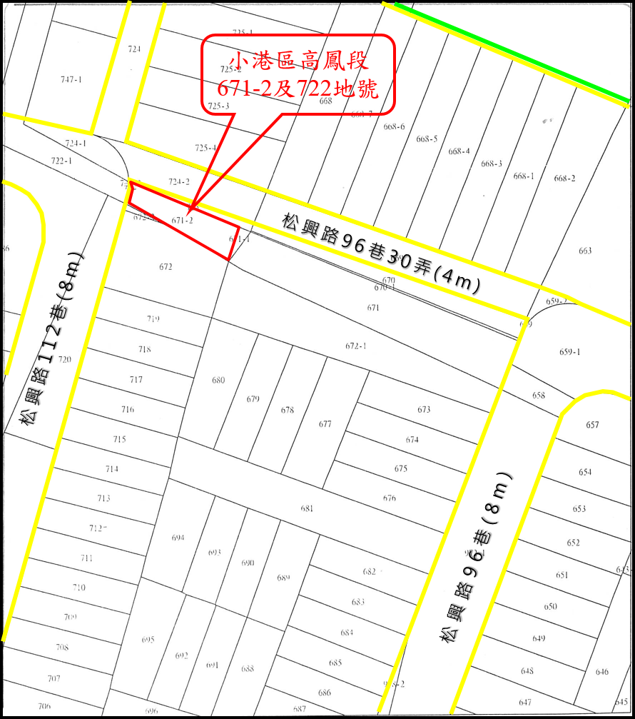 - 不動產標示-土地: 高雄市小港區高鳳段671-2及722地號2筆 ( 土地明細資料 )