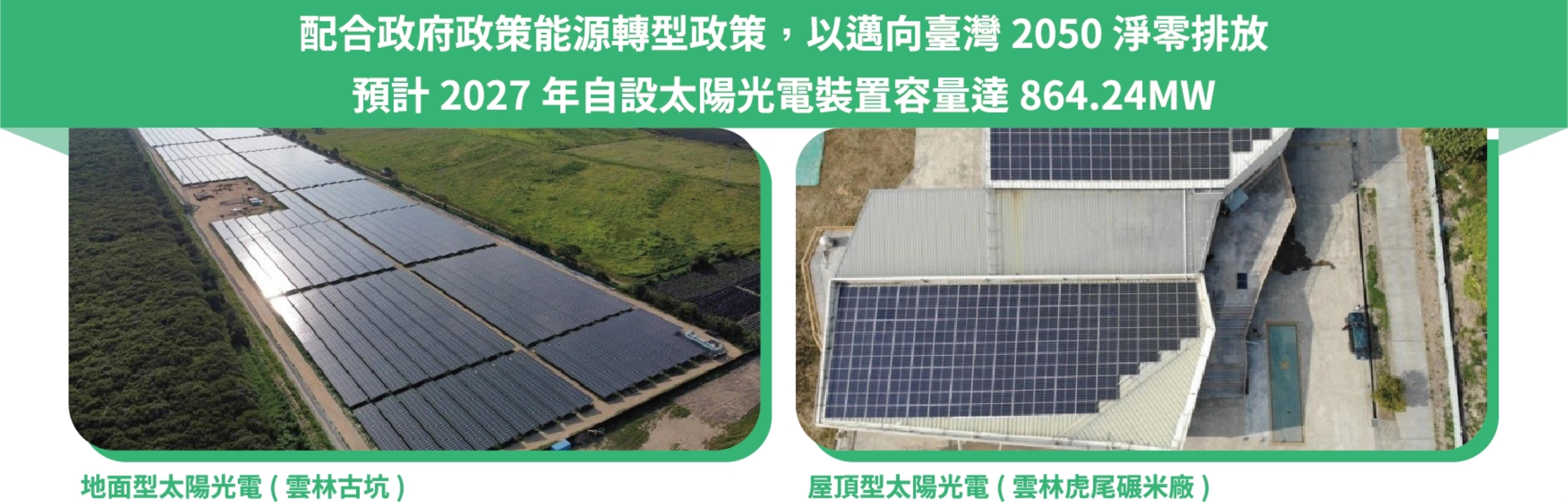 秉持「成為亞太地區健康及綠色產業的標竿企業」的願景,本公司很早就投入發展再生能源,並逐年提高太陽能裝設面積,響應「臺灣2050年淨零排放目標」。