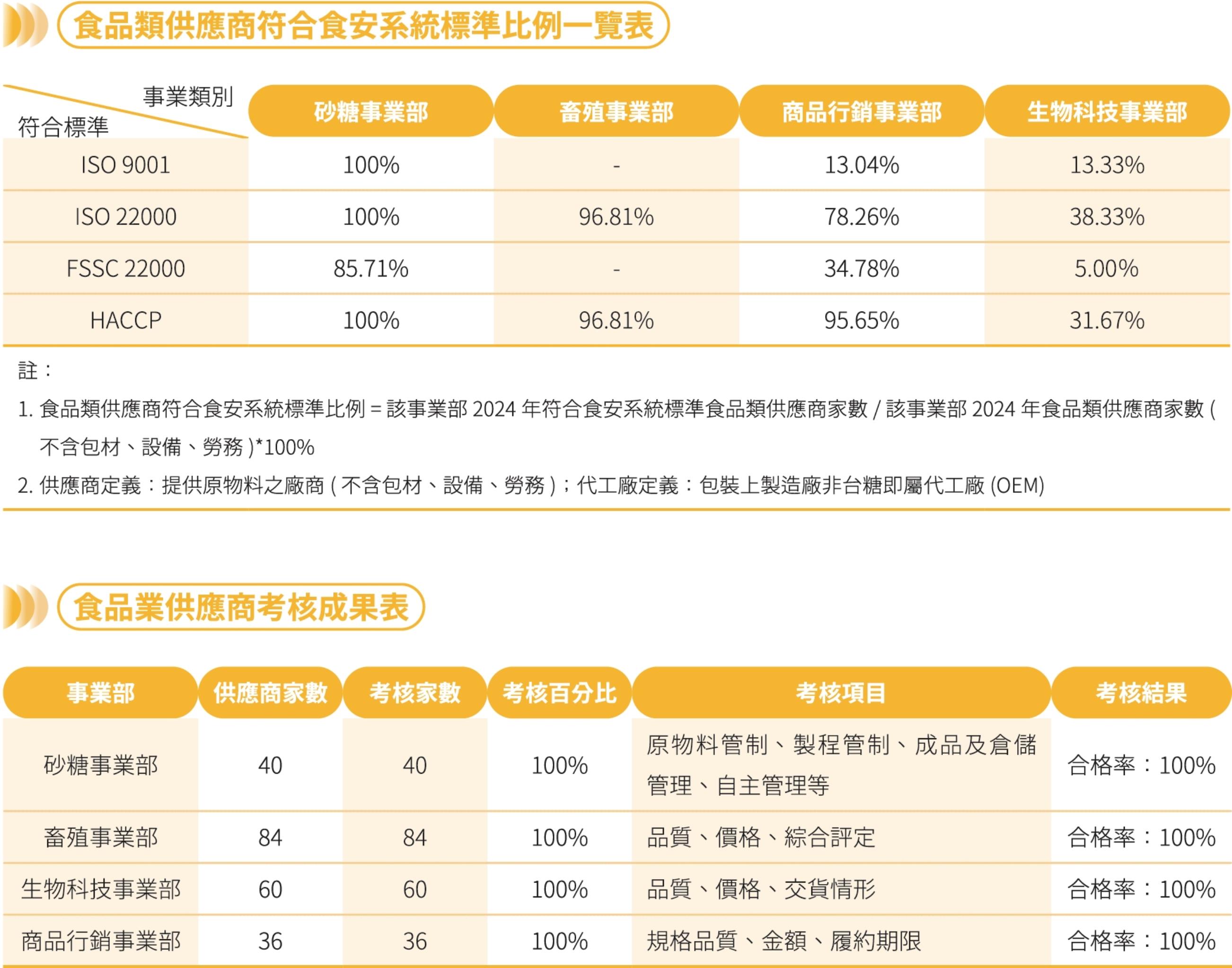 於價值鏈中擁有可信賴的供應商夥伴,是企業營運的重要關鍵,台糖透過供應商履約管理、定期稽核等管理措施,能有效且系統性的與供應商進行交流;串聯供應商與台糖公司,打造更良好且永續的產業環境。