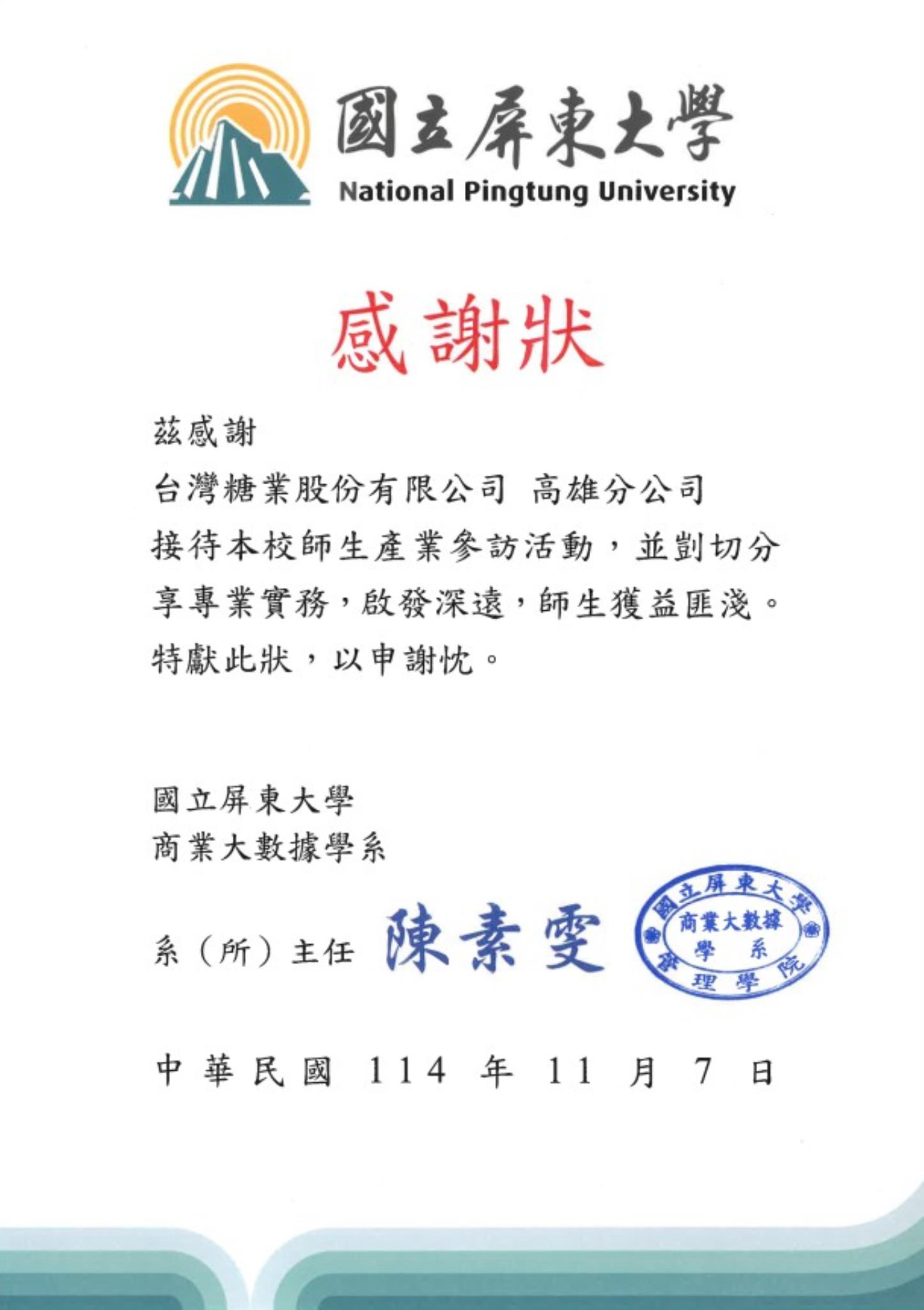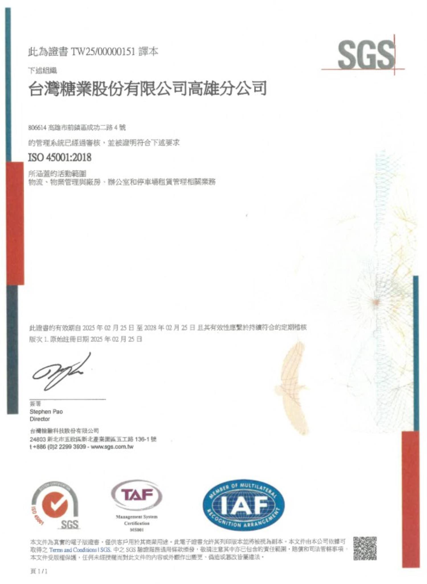 高雄分公司地址:806614 高雄市前鎮區成功二路4號 (交通位置圖) 電話:07-8230-230 消費者服務專線:0800-026-168 若您對高雄分公司有任何建議事項及客戶服務,請 e-mail:tsc01@taisugar.com.tw 台灣糖業公司版權所有 Taiwan Sugar Corporation All Rights Reserved 您是第 798,400 位瀏覽者 更新日期 2025-11-24 為供更為穩定的瀏覽品質與使用體驗,建議更新瀏覽器至以下版本:IE11(含)以上、最新版本Edge、最新版本Chrome、最新版本Firefox、最新版本Safari
